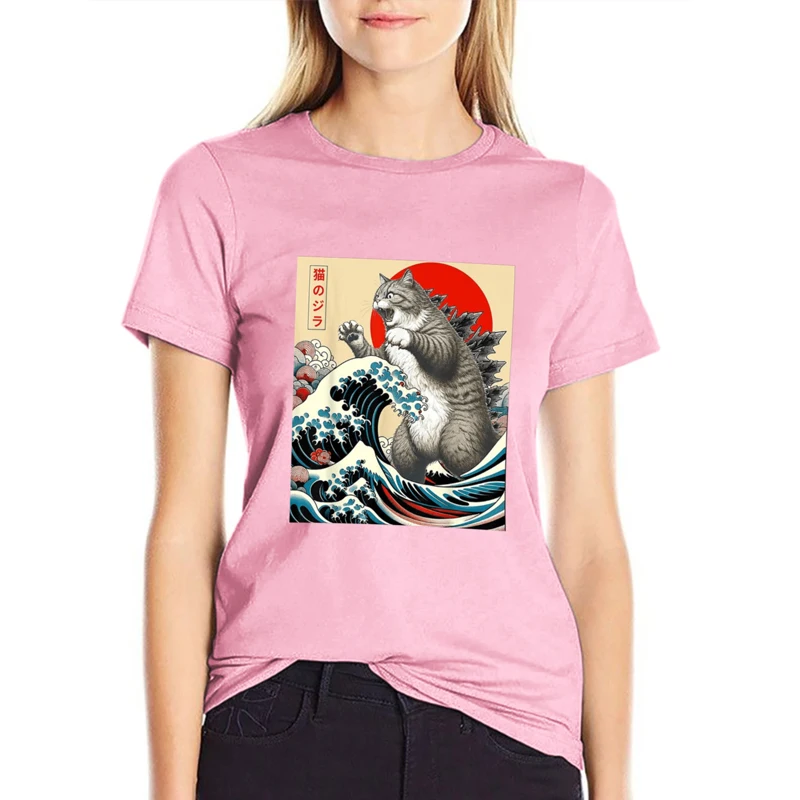 Anime Japanese Art Catzilla Cat Funny Cat Summer Sport T-Shirt Unisex Cartoon T Shirt O-neck Tops Tees Fashion Fitness T Shirt