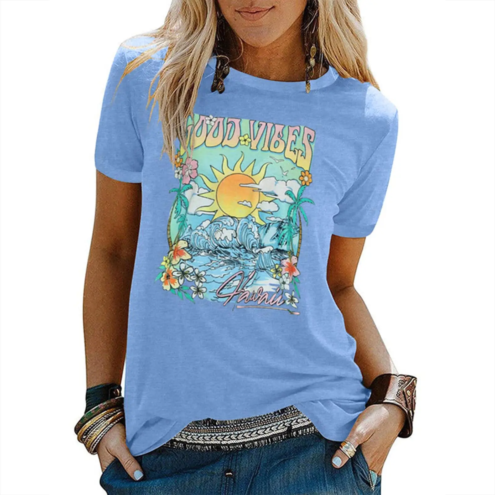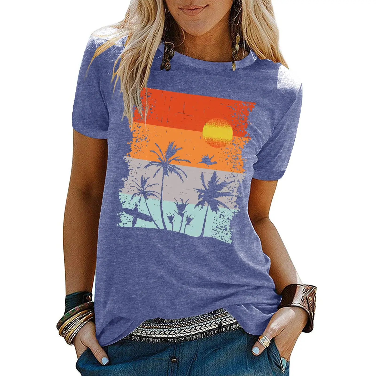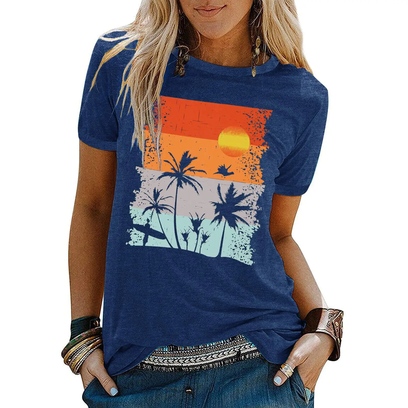 Hawaiian Graphic Beach T-Shirts 3D Print Women Vintage O-Neck Short Sleeves T Shirt Y2k Harajuku Tees Street Top Female Clothing